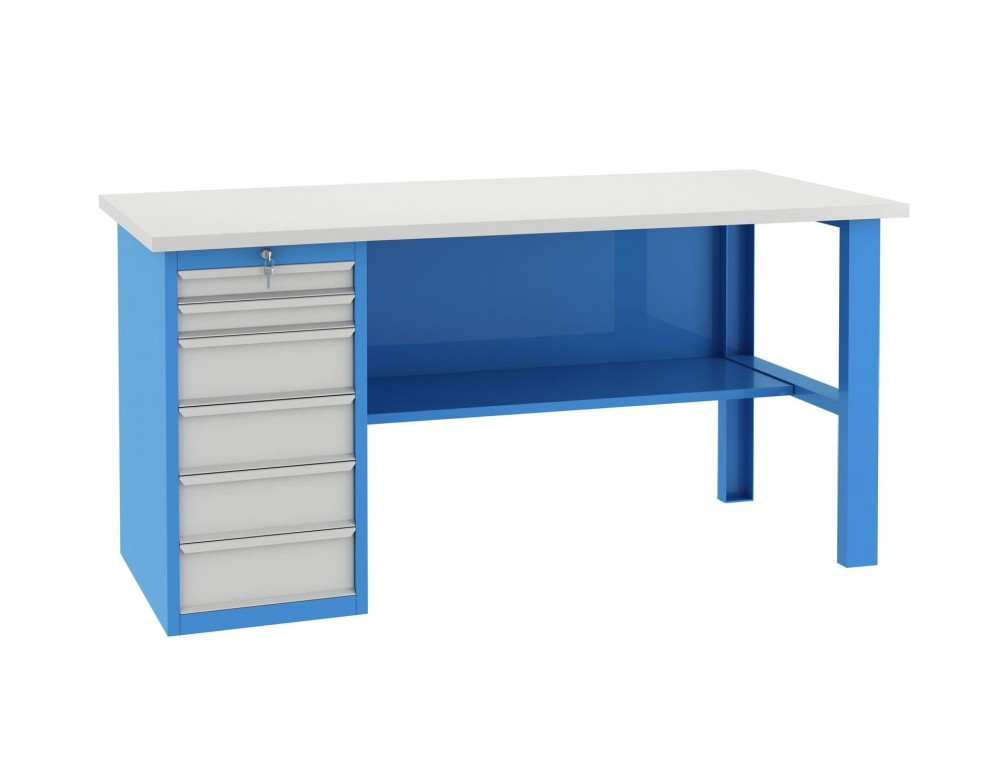 Верстак окрашен полимерной краской в цвета по таблице RAL 7035, RAL 5015, RAL 7016 (по согласованию)