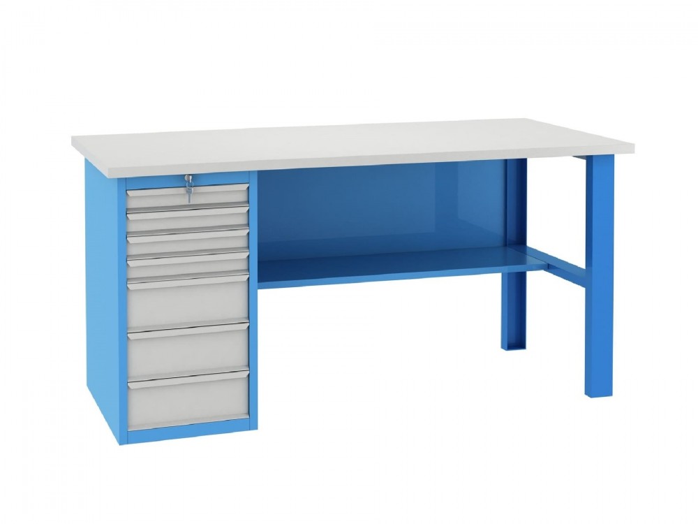 Верстак представляет собой специализированный рабочий стол, предназначенный для выполнения различных работ, таких как обработка материалов, сборка деталей и ремонт оборудования. Основные характеристики верстака включают прочность и устойчивость к механическим нагрузкам, обеспечиваемые конструкцией из высококачественных материалов, таких как сталь или твердые породы древесины. Рабочая поверхность обеспечивает надежную основу для обработки материалов и выдерживает значительное давление и удары инструментами. Выдвижные ящики предназначены для удобного хранения мелких инструментов, комплектующих и позволяют быстро находить необходимые инструменты и детали. Полки используются для размещения крупных заготовок, готовых изделий и свобождают рабочее пространство на основной поверхности стола.